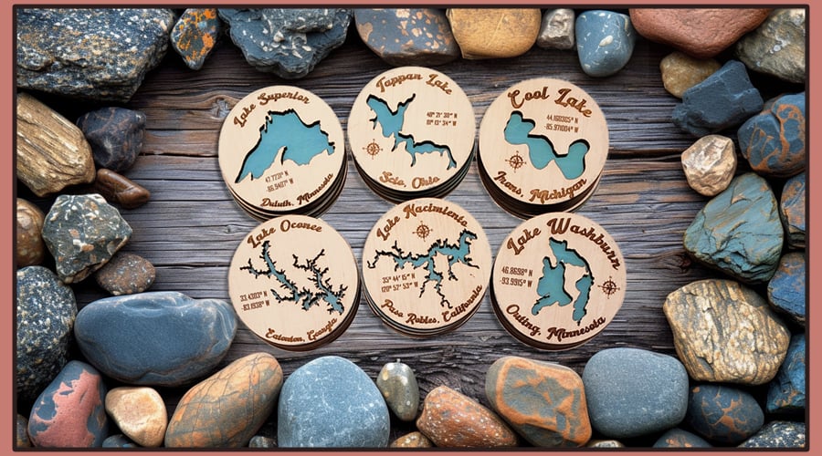 Set of 4 Custom Lake Map Drink Coasters, Lake House Summer Party Decor, Guy Gift