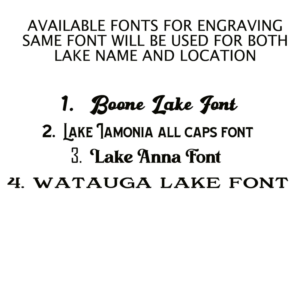 - WHEN YOU CHECKOUT, THERE WILL BE A PLACE TO ENTER INSTRUCTIONS. PLEASE PUT YOUR LAKE NAME, TOWN AND STATE, OR OTHER INFO YOU WANT ENGRAVED THERE.